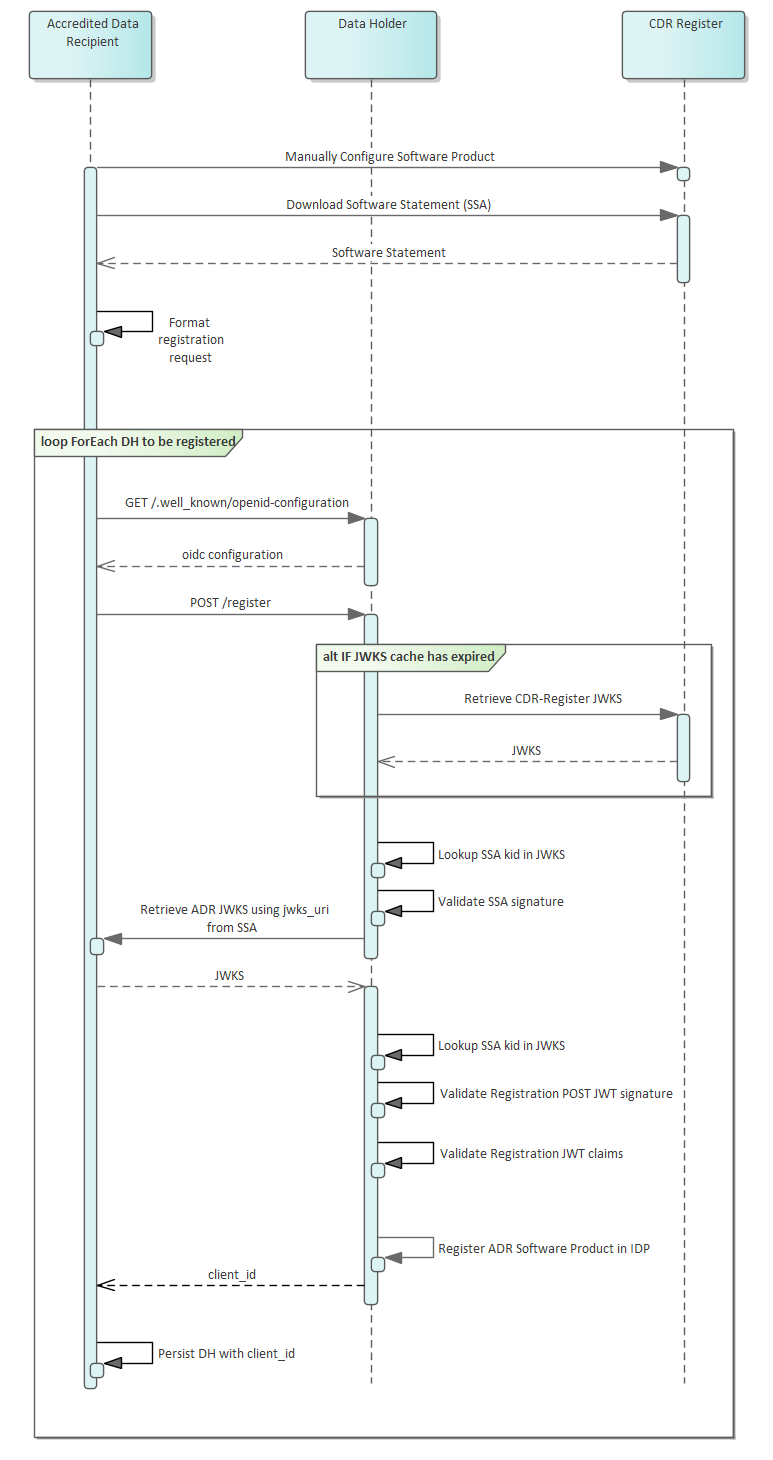 Accredited Data Recipient Software Products within the Consumer Data Right will dynamically register with one or more Data Holders, to obtain client credentials used to retrieve consumer data on behalf of a consumer.