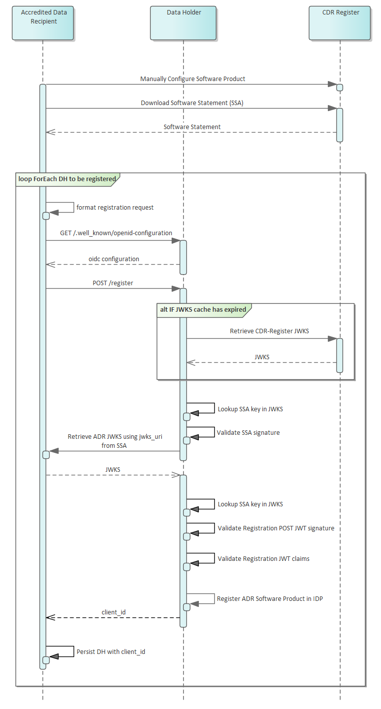 | 30/10/2019 | 0.8.0 | Updated Client Registration | Reverted back Registration flows sequence diagrams to no longer include status checks for the software_id, instead relying on the CDR Register controlsAdded non-normative examples for maintenance flows and error scenariosSSAs will only be issued for active software productsAdded Registration Validation section |